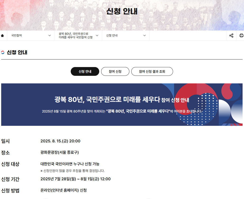 - 광복 80년 기념사업추진위원회 홈페이지 접속