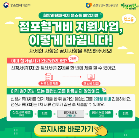 2025 소상공인 폐업 철거지원금 자격 신청하기 안내입니다. 장사 접을 때 가장 골치 아픈 것 중 하나가 바로 철거 비용입니다. 간판, 내부 인테리어, 시설물 정리까지… 돈도 들고 시간도 들죠. 그래서 정부에서는 폐업을 앞둔 소상공인 사장님들께 철거 지원금을 통해 조금이나마 부담을 덜어드리고 있습니다.