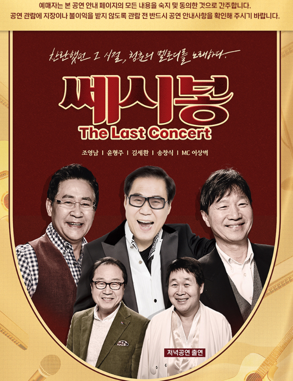 2025 쎄시봉 콘서트 전국투어 티켓팅 예매하기 안내입니다. 2025년 마지막을 장식할 감성 충만한 무대! 쎄시봉 [The Last] 콘서트가 돌아옵니다. 오랜 세월 음악 팬들의 사랑을 받아온 쎄시봉, 이번엔 전국 투어 형식으로 서울을 비롯해 부산, 대구, 인천, 경기, 고양 등 다양한 지역에서 무대를 선보일 예정이에요.